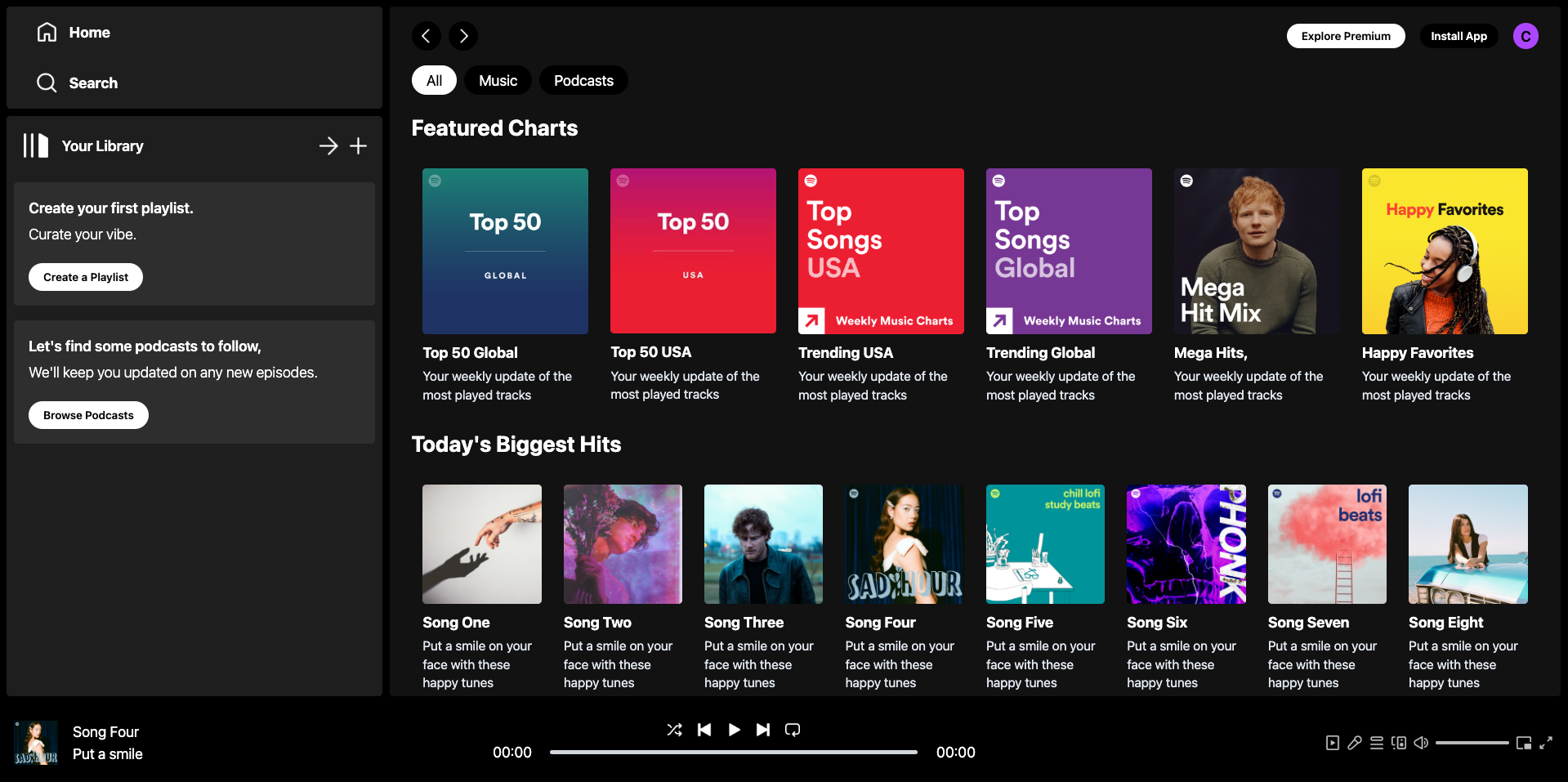 Built a music streaming application inspired by Spotify to practice modern React development patterns. Implemented full playback controls with play/pause/seek functionality, album browsing, and dynamic audio management using React Context API for global state. Designed a responsive UI with Tailwind CSS featuring interactive navigation and seamless track transitions. This project strengthened my understanding of component architecture, state management patterns, and audio API integration while building a polished, user-friendly interface.